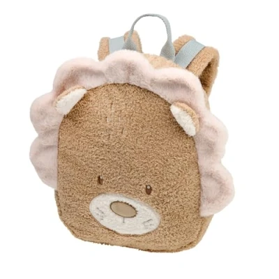 Nattou Unisex Kid's Backpack/School Bag, Soft Teddy Fabric, 100% Polyester, Machine Washable, Caramel Lion