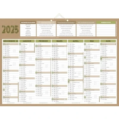 Calendar laminated on recycled rigid cardboard Grid 7 months double-sided School holidays, parties, lunations, weeks, dates 2 eyelets and 1 cord 100% recycled product - French origin guaranteed