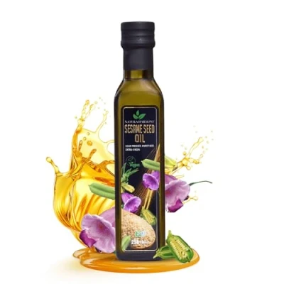 Natura Harmony 100% pure Sesame Seed Oil (250 ml), Cold Pressed, Extra Virgin, 250 ml Rich in Vitamin E, B & Complex Minerals