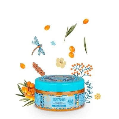 Exfoliating body scrub that gently removes dead skin cells and leaves the skin soft, smooth and radiant. Best exfoliator for body enriched with organic Altai sea buckthorn oil, vitamins and antioxidants to nourish and revitalise the skin. Organic body scrub with honey and sage extract that hydrates, tones and improves skin elasticity. Shower exfoliator scrub with a pleasant massage texture, suitable for sensitive skin and daily body care. Skin exfoliator scrub perfect as part of your routine – organic shop body scrub for women seeking natural skincare and smooth results.