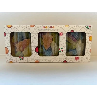 100% vegan, soft, and festive ClassicChristmas shapes and fruity flavors Three 220g jars ideal for holiday sharing Colourful, cheerful jars perfect for gifting Fun holiday treat for all ages