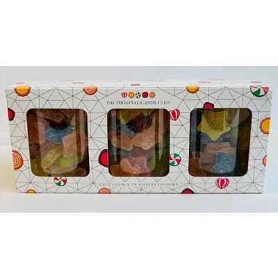 Natural Candy Shop Gift Box 3 x 220g Jars of Fizzy Vegan Star Shaped Candies