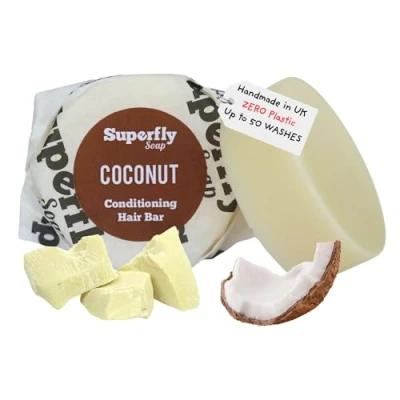 Natural Hair Conditioner Bar by Superfly Soap. Coconut Fragrance. Handmade, Vegan friendly & Plastic free. 98% Naturally derived ingredients.