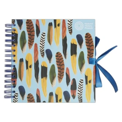 Natural History Museum Wiro Bound Hardback Scrapbook, 40 Pages, White Paper, Feathers, 8" x 8", Multicoloured, with Coordinating Ribbon Closure and Wire Colours