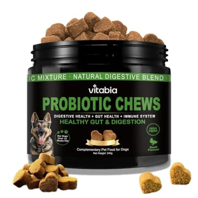 ✅ PROBIOTICS FOR DOGS: Our specialized dog food supplements are designed to provide essential probiotic support, promoting gut health and offering anal gland support so its one of the best fibre boost and natural natural dog treats for gut health. ✅ PROFIBRE FOR DOGS: Featuring profibre for dogs, these dog chews contain psyllium Husk and Organic Dried pumpkin for fibor digestive support. Address GI issues and promote anal gland health with Vitabia's Pro Fibre for Dogs and glandex for dogs uk. ✅ GLAND TREATMENT FOR DOGS: Our Dogs Digestive Care Fibre scoot Chews are designed to address dog anal gland issues and promote overall gut health and alleviate problems with glandex like bloating, gassiness, bad breath and irregular bowel movements. ✅ DOG PROBIOTICS FOR GUT HEALTH: Our dog chew are filled with 12 strains of probiotic mixture, Bacillus Subtilis DE11 and digestive enzyme, dog supplements that helps to strengthen the gut anal wall, sooths upset stomach and provide best health supplies for dogs. ✅100 % NATURAL: Vitabia pre and probiotics supplements for dogs are formulated with 100% natural and organic ingredients. There is no chemical, artificial flavouring or preservatives so our no scoot chews are completely safe for pets.