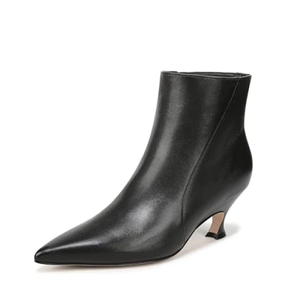Sculpted-heel dress bootie with sleek stitch detail Premium leather upper with pointed toe Side zip closure for easy on and off REZORB responsive cushioning for shock absorption + impact protection for sneaker-level comfort