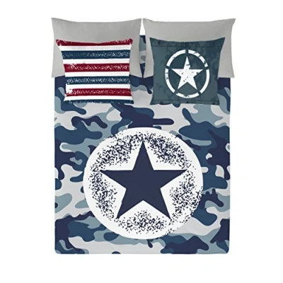 Includes: 1 duvet cover + 2 grey pillowcases Square cushions shown in the photo are sold separately; no fitted sheet included. Composition: 100% cotton 144 threads; digital print; flap closure 180 bed: 1 duvet cover: 260 x 220 cm; and 2 grey pillowcases 45 x 110 cm. Washing: Machine washable at 40; Wash inside out; First wash should be done separately; Iron at 150; Do not dry clean; Lay immediately after the wash cycle