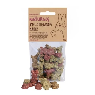Naturals Rosewood Apple & Strawberry Bunnies, Rabbit Treats Small Animal Treats, 100g