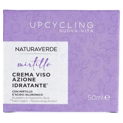 HYALURONIC ACID FOR THE FACE The special combination of cranberry extract obtained through a processing process that follows the principles of circulatory economy, and to combat hyaluronic acid by counteracting the formation of free radicals. The formula is enriched with a blend of natural oils and extracts with moisturising and nourishing properties. MOISTURIZING FACE CREAM The formula is enriched with a blend of natural oils and extracts with moisturizing and nourishing properties. The cream helps restore natural moisture and smooth facial skin. Instructions for use: for your skin care, apply the cream to cleansed face by gently massaging it with your fingertips in circular motions to avoid the eye area. UPCYCLING LINE: A sustainable and effective line of active ingredients that have been given a new life and function. Upcycling blueberry and upcycling grapefruit without parabens, no SLS, no PEG, no silicones. Dermatologically tested. 100% recyclable packaging. NATURAVERDE: Experience and quality in the production of certified cosmetic products for the personal care and beauty and well-being of every person. It is a range of products whose formulations use natural and organic extracts for daily beauty. A reference point for anyone looking for safe and certified products with skin-friendly formulations.