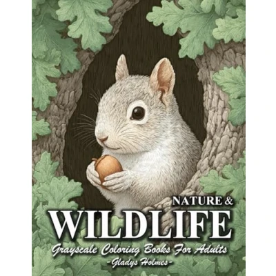 Nature And Wildlife: Adult Grayscale Wildlife Coloring Books With Realistic Animal, Woodland Life Calming Scenes