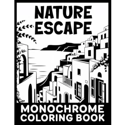 Nature Escape Monochrome: Calming and Mindful One Pen Coloring Book for Stress Relief Relaxation featuring Peaceful Landscapes, Flowers Plants Teens Adults