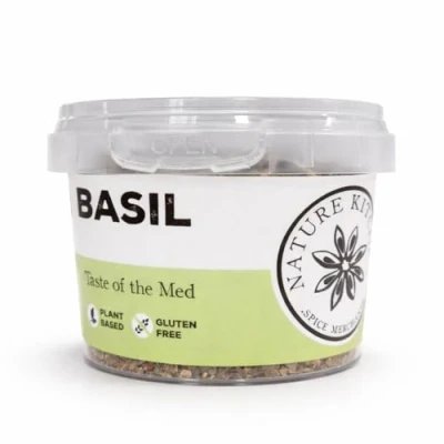 Premium Basil 50G: Fresh, aromatic basil to elevate your cooking with a fragrant and authentic taste, perfect for all your culinary creations. Convenient Refill Packs: Ideal for refilling grinders or spice jars, keeping your kitchen organized with top-quality, long-lasting basil. Versatile for All Cuisines: Adds a flavorful touch to Italian, Mediterranean, or any dish requiring a burst of fresh herbal aroma. Hand-Blended Quality: Expertly crafted with high-quality basil for superior flavor, a perfect ingredient for everyday cooking or special recipes. Exclusive Selection: Part of Nature Kitchen’s extensive variety, offering hard-to-find spices to satisfy your culinary creativity.