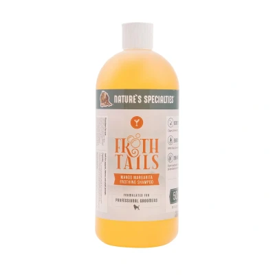 Nature's Specialties Froth Tails Mango Margarita Shampoo Inspired by both the ever growing trend of "Frothing" as well as one of our favorite "Frothy" cocktails, Froth Tails Mango Margarita is a high concentrate conditioning shampoo formulated to produce maximum suds. When frothing, emulsifiers are activated, forming a thick foam which allows for targeted cleaning or a head to tail wash without losing excess product down the drain. For groomers not looking to "Froth", this product cleans and conditions wonderfully up to a 50:1 dilution ratio, making it very cost effective for the everyday groom. The vitamin rich and antioxidant properties of Olive and Avocado Oils also promote hair strength while delivering added moisture to the hair and shaft. Contains: A Non-Toxic, Biodegradable Blend in a Proprietary Mild Shampoo Base with Olive Oil, Avocado Oil, Aloe Vera, Panthenol, Vitamins A, D, and E, and Fragrance. pH Balanced. Cleans & Moisturises Enriched with Olive & Avocado Oil Tangy mango fragrance with sweet acai berry undertones Dilutes up to 50:1