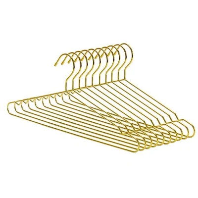 Elegant Design: Gold finished bring a beautiful and elegant solution to your closet space, shuffle through your wardrobe to have a peaceful tone. You will absolutely adore hearing the jangling sound when they hit, just like chimes. Not only do they look great, but they sound great as well. Sturdy Hangers: It's made of metal wire, strong enough to hold your heavier garments and preserve the shape of your garments. These durable hangers will last forever. Bilateral Notches : The notches make them very useful for hanging dresses, clothes with straps, and skirts, prevents clothing from falling. Silicone cap is used at the end to prevent scratches. Space Saver: Slim design keep your closet in order and increase your closet space. Size: L17.7 x H7.4 x T0.13 inches (45 x 18.8 x 0.32 cm), ideal for everyday use. Set of 10
