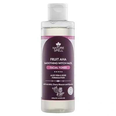 Nature Spell Witch Hazel Facial Toner With Fruit Alpha Hydroxy Acids, Cherry Blossom, Aloe Vera & Rose Water 200 Ml Smoothing Natural Aha'S Alcohol Free Formulation