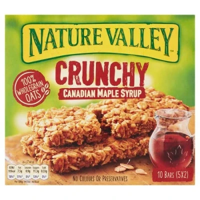 Nature Valley Crunchy Canadian Maple Syrup is a crispy baked double bar The double bars combine 100% whole grain oats with Canadian maple syrup Lactose free, suitable for vegetarians, Halal & Kosher The crunchy bars are free of artificial flavours, colours and preservatives.