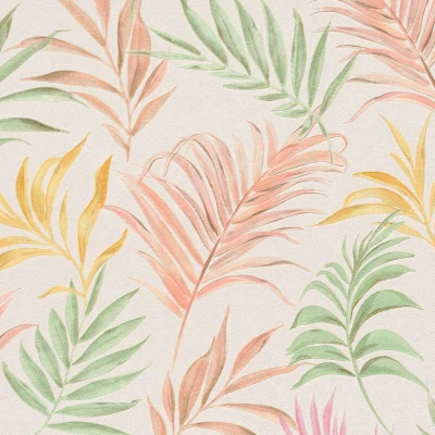 Nature wallpaper wall Profhome 791083 hot embossed non woven textured with floral ornaments shimmering cream pink yellow green 5,33 m2