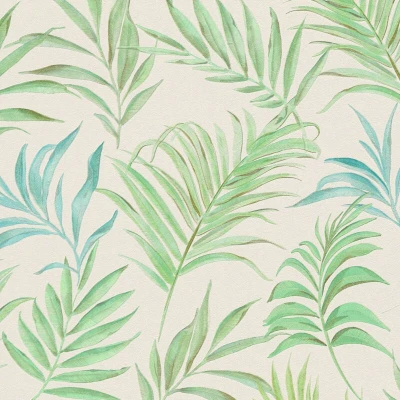 Quantity of rolls (pcs) 1 Package contents (m2) 5.33 Roll size 0.53 m x 10.05 m = 5.33 m2 (57 ft2) Backing material non woven Length (mm) 10050 Pattern repeat offset match | pattern repeat 64/32 cm Height (mm) 1 Washability scrubbable Light fastness good light fastness Width (mm) 530 Removal strippable Number of pieces 1 Application paste the wall Weight (g) 1290 Quality note IGI Quality Mark according to international quality standards Surface textured Look shimmering pattern, matt background Article no. 791084-GU Manufacturer e-Delux GmbH Manufacturing country / region Germany Suitable for living room, bedroom, kitchen, children's room, hall, etc. Model no. Profhome | 791084-GU Pattern palm trees fabric look floral Wallpaper type hot embossed non-woven wallpaper pattern colour green turquoise blue