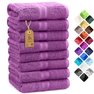 NatureMark 8 Hand Towels Set 100% Cotton Soft and Absorbent Bathroom Towels, Durable Comfortable, Size 50 x 100 cm, Purple