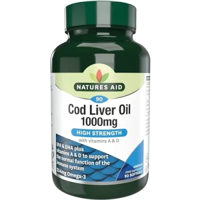 Natures Aid 1000mg High Strength Cod Liver Oil Pack of 90 Capsules (Packaging May Vary)