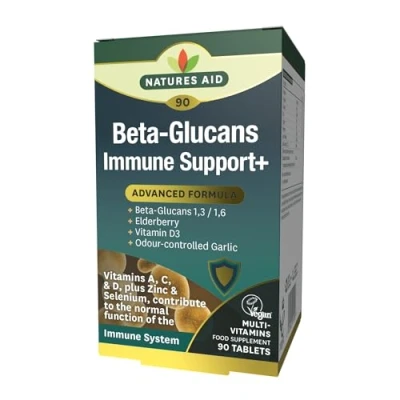 Natures Aid Beta Glucans Immune Support + 90 Tablets (Award winning Formula, with (1,3/1,6), Elderberry, Vitamin D3 and Odour controlled Garlic, Vegan Society Approved, Made in the UK)