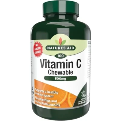 Chewable vitamin C tablets, providing 500 mg vitamin C Sugar free With Rosehips and Citrus Bioflavonoids Contributes to the normal function of the immune system Made in the UK to GMP and pharmaceutical standards Packaging may vary