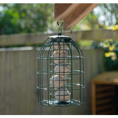 Cheaper-OnlineCreate a tranquil paradise and attract a variety of wild birds into your garden this year with this fat ball feeder cage. Birds spend most of their day foraging for food to meet their needs and their nestling needs. Bird feeders are an easy food source giving them a stable source of nutrition. Having a reliable source of food and a safe place to eat is especially important at times of the year when food is harder to come by when competition is high. This bird feeder is perfect for holding suet fat balls, kitchen leftovers and even fruits. Made with a powder coated metal mesh construction with a guard to deter squirrels and to allow the birds safely and happily feed. Simply fill the feeder with your chosen feed and hang on a suitable branch high enough away from predators or hang on a bird feeding station with the hanging loop. Bird feeders offer a fun and entertaining way to observe birds up close and connect with nature. Product Dimensions Height: 27cm Diameter: 16cm