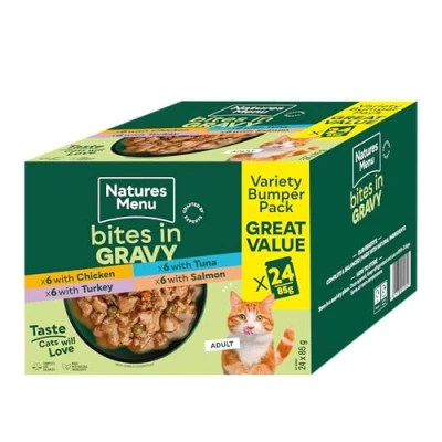 Natures Menu Bites in Gravy Wet Cat Food Pouches Multiflavour Pack 24 x 85g