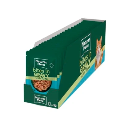 Natures Menu Bites in Gravy Wet Cat Food Pouches with Tuna 22 x 85g