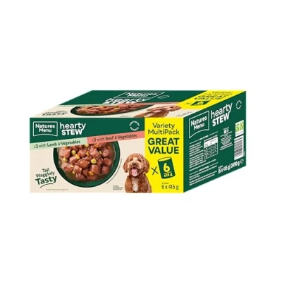 Complete pet food for Adult Dogs Multipack contains 3x Beef, 3x Lamb No added colourants and preservatives Crafted by Experts Inspired by traditional British cuisine