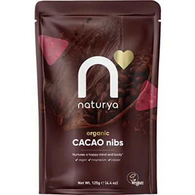 Packed with antioxidants: Naturya Organic Cacao Nibs are a rich source of antioxidants that help protect your cells from damage caused by free radicals. High in fiber: With 7 grams of fiber per serving, Naturya Organic Cacao Nibs can help you maintain good digestive health and keep you feeling fuller for longer. Great for heart health: Cacao Nibs contain flavonoids that have been shown to lower blood pressure, reduce inflammation, and improve circulation. Boosts mood and energy: Cacao Nibs contain theobromine, a natural stimulant that can help improve mood, increase alertness, and provide a natural energy boost. Versatile ingredient: Naturya Organic Cacao Nibs are a versatile ingredient that can be used in a variety of recipes, including smoothies, baked goods, and desserts. Rich in iron: Cacao Nibs are an excellent source of iron, an essential mineral that helps transport oxygen throughout the body and supports immune function. Non-GMO and gluten-free: Naturya Organic Cacao Nibs are certified non-GMO and gluten-free, making them a great choice for people with dietary restrictions or preferences. Ethically sourced: Naturya sources their Cacao Nibs from small-scale farmers in Peru who use sustainable and ethical farming practices, supporting local communities. Low in sugar: Unlike traditional chocolate, Naturya Organic Cacao Nibs are low in sugar, making them a healthier alternative for those looking to reduce their sugar intake. Delicious and satisfying: Naturya Organic Cacao Nibs have a rich, chocolatey flavor and crunchy texture that make them a delicious and satisfying snack on their own or when added to your favorite foods.