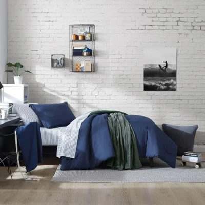 NAUTICA HOME: Sustainably crafted bedding and bath collections inspired by the sea. Our collections combine style and functionality for products that are comfortable, versatile, and ideal for everyday use. QUALITY: Crafted from ultra-fine synthetic fibers, this bed-in-a-bag set offers a soft, silky feel that enhances sleep comfort. The tightly woven fabric provides durability, resists pilling, and maintains its vibrant color and smooth texture even after multiple washes. EASY CARE: Machine wash separately in cold or warm water using a mild, fragrance-free detergent. Avoid bleach and fabric softeners to maintain softness and prevent clogging of fibers. Tumble dry on low heat or air dry to preserve the fabric's integrity and prevent shrinkage. Do not iron. SIZE: Comforter- 92"L x 68"W, Standard Sham- 20"L x 26"W, Stretch to Fit Fitted Sheet- 79"L x 39"W, Standard Pillowcase- 20"L x 30"W CERTIFIED: OEKO-TEX Certified for Safety- Guaranteeing product is free from harmful substances and safe for you and your family