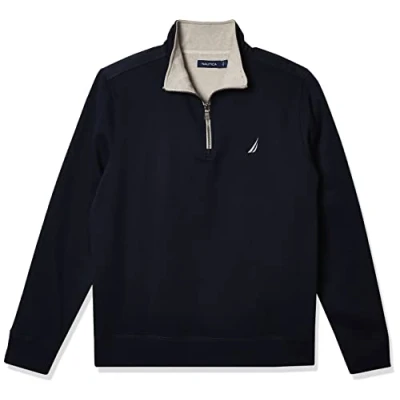 Nautica Men's 1/4 Zip Pieced Fleece Sweatshirt, Navy, Large