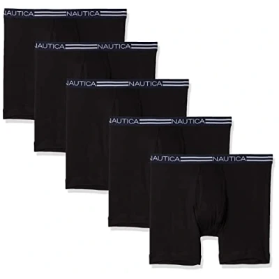 Nautica Men's Classic Cotton Boxer Briefs, Black 5 Pack, S (Pack of 5)