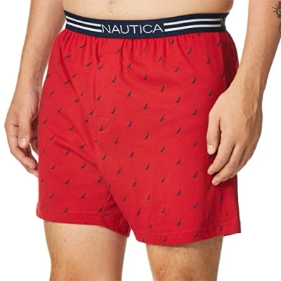 Nautica Men's Classic Cotton Loose Knit Boxer Shorts, Sails Red, M
