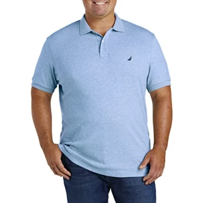 Nautica Men's Classic Fit Short Sleeve Solid Soft Cotton Polo Shirt, Deep Anchor Heather, 4X Large Tall