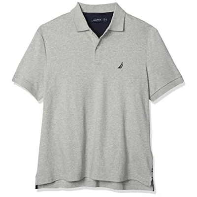 Nautica Men's Classic Fit Short Sleeve Solid Soft Cotton Polo Shirt, Grey Heather, Large Tall