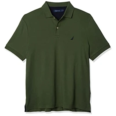 Nautica Men's Classic Fit Short Sleeve Solid Soft Cotton Polo Shirt, Pine Forest, 5X