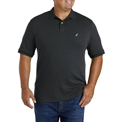 Nautica Men's Classic Fit Short Sleeve Solid Soft Cotton Polo Shirt, True Black, XL Tall