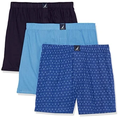 Nautica Men's Cotton Woven 3 Pack Boxer Shorts, Aero Blue/Peacoat/Anchor Bright Cobalt, L