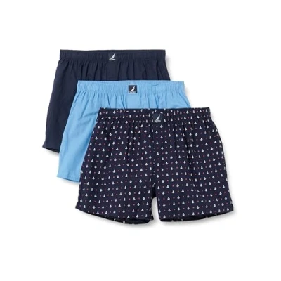 Nautica Men's Cotton Woven 3 Pack Boxers Shorts, Peacoat/Aero Blue/Anchor, M