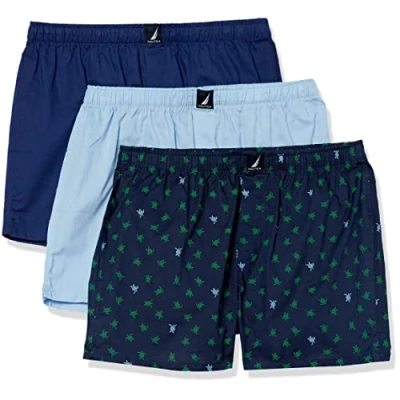 Nautica Men's Cotton Woven 3 Pack Boxers Shorts, Peacoat/Ocean Lapis/Sails Sea Cobalt, M