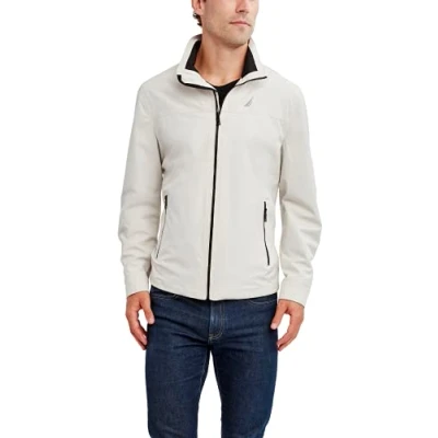 Nautica Men's Lightweight Windbreaker Stretch Athletic Outdoor Full Zip Bomber Golf Jacket, Stone, XL