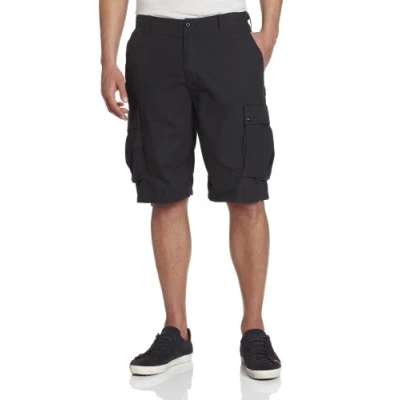 Loose Fit knee-length cargo short featuring belt-loop waistband Inseam: 9.5" Zip fly with button closure Multiple pockets: 2 slanted front, 2 rear welt, 2 cargo