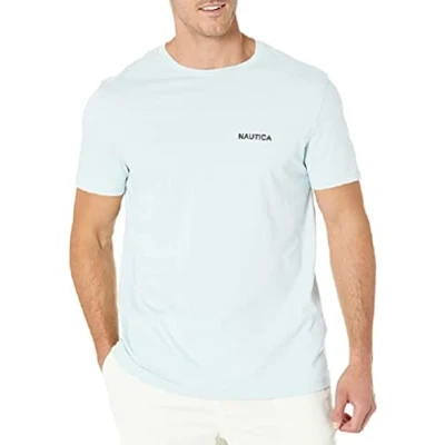 Nautica Men's Short Sleeve Crew Neck T Shirt, Bay Blue Solid, Large