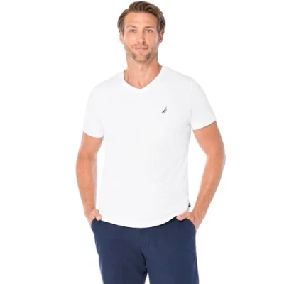 Nautica Men's Short Sleeve Solid Slim Fit V Neck T Shirt, Bright White, S