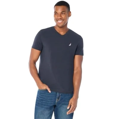 Nautica Men's Slim Fit Short Sleeve V Neck Tee T Shirt, Marine, XL