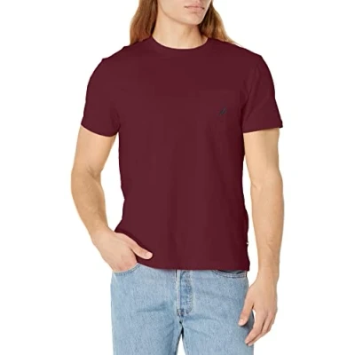 Nautica Men's Solid Crew Neck Short Sleeve Pocket T Shirt, Shipwreck Burgundy, XL