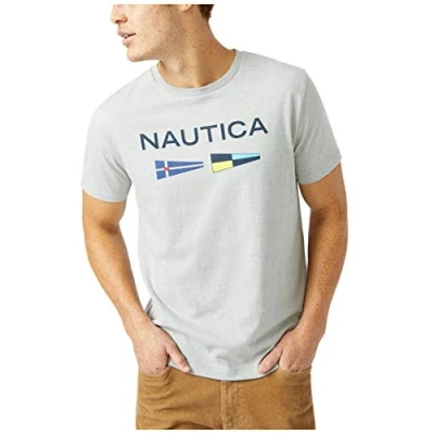 Nautica Men's Sustainably Crafted Logo Signal Flag Graphic T Shirt, Grey Heather, Medium