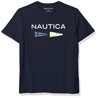 Nautica Men's Sustainably Crafted Logo Signal Flag Graphic T Shirt, Navy, Medium